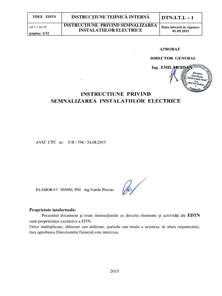 INSTRUCTIUNE PRIVIND SEMNALIZAREA INSTALATIILOR ELECTRICE