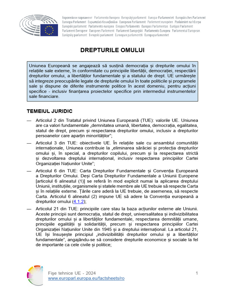 Aspectele legate de drepturile omului în relațiile externe ale UE intră și în domeniul de