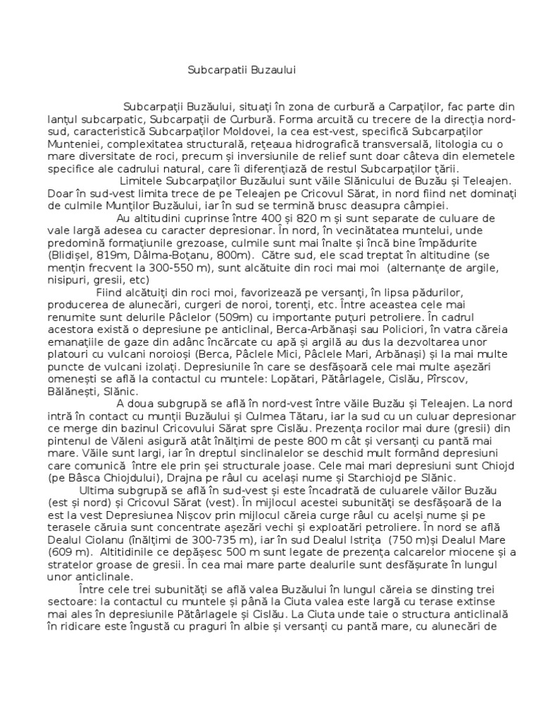 Subcarpatii Buzaului Subcarpaii Buzului, situai n zona de curbur a Carpailor, fac parte din lanul subcarpatic, Subcarpaii de Curbur.