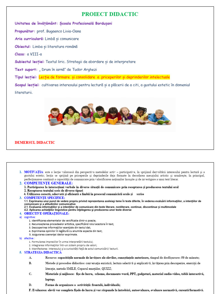 perfecţionarea continuă a capacităţii de comunicare prin valorificarea noţiunilor însuşite şi de investigare a unui text literar.