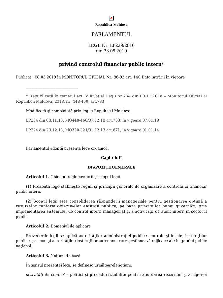 Publicat : 08.03.2019 în MONITORUL OFICIAL Nr. 86-92 art. 140 Data intrării în vigoare