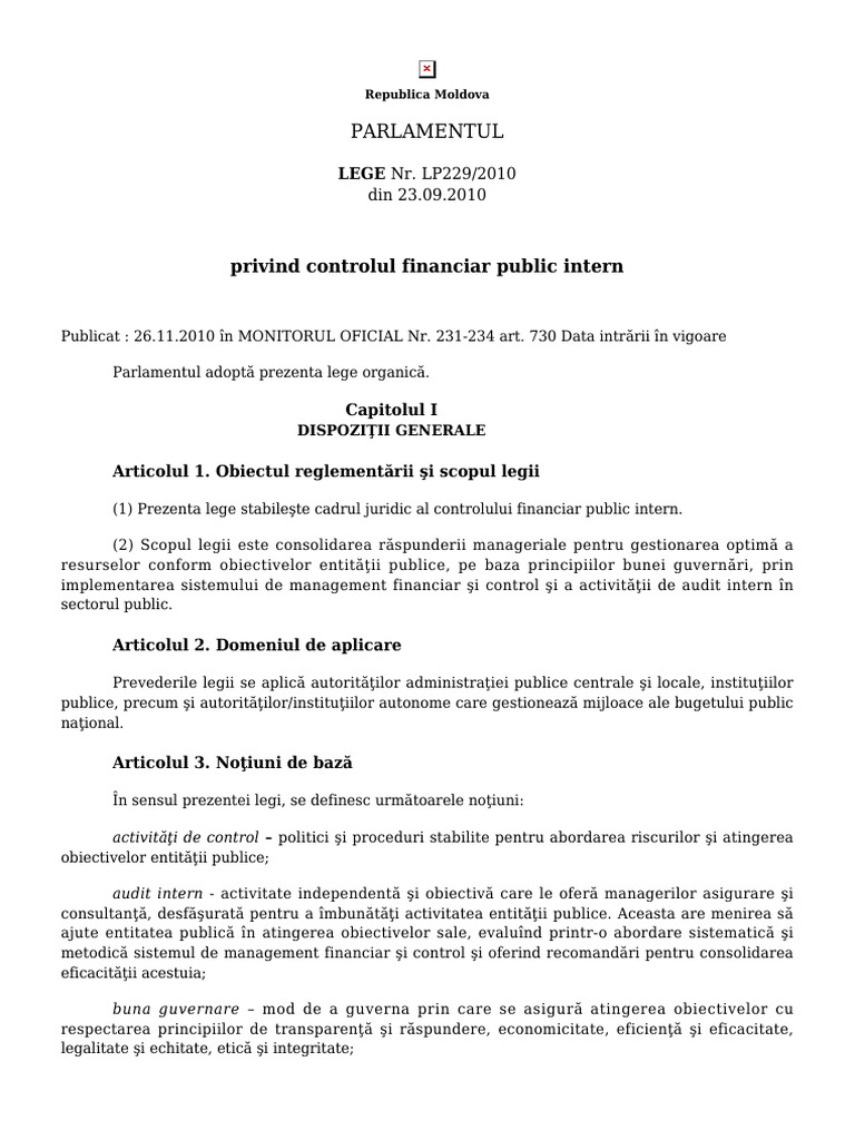 (1) Prezenta lege stabileşte cadrul juridic al controlului financiar public intern.