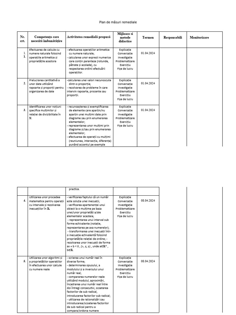 Nr. Competența care Activitatea remedială propusă metode Termen Responsabili Monitorizare