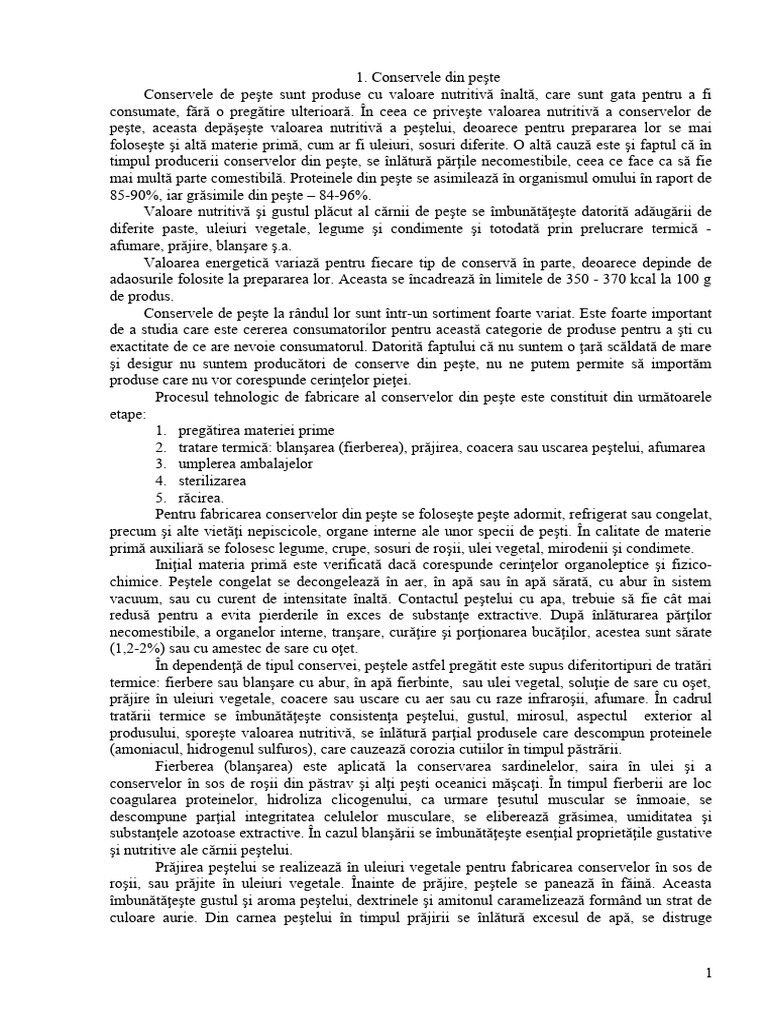 generale de producere a conservelor. Peştele prelucrat este tăvălit în pesmeţi şi prăjit în ulei