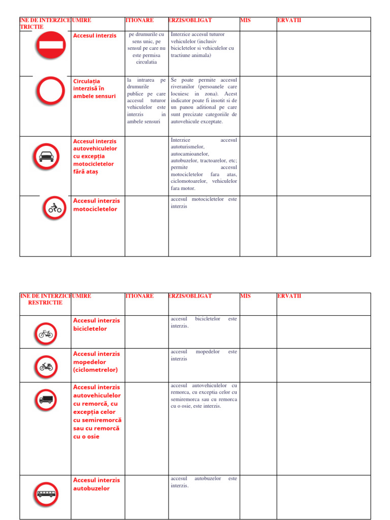 DENUMIRE POZITIONARE INTERZIS/OBLIGAT PERMIS OBSERVATII