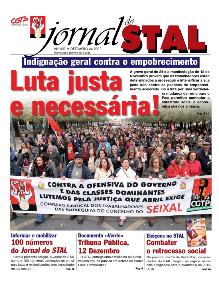Com a presente edio, o Jornal do STAL cumpre 100 nmeros, publicados ao longo de quase trs dcadas, que nos falam das principais reivindicaes e lutas travadas pelos trabalhadores da Administrao Local.