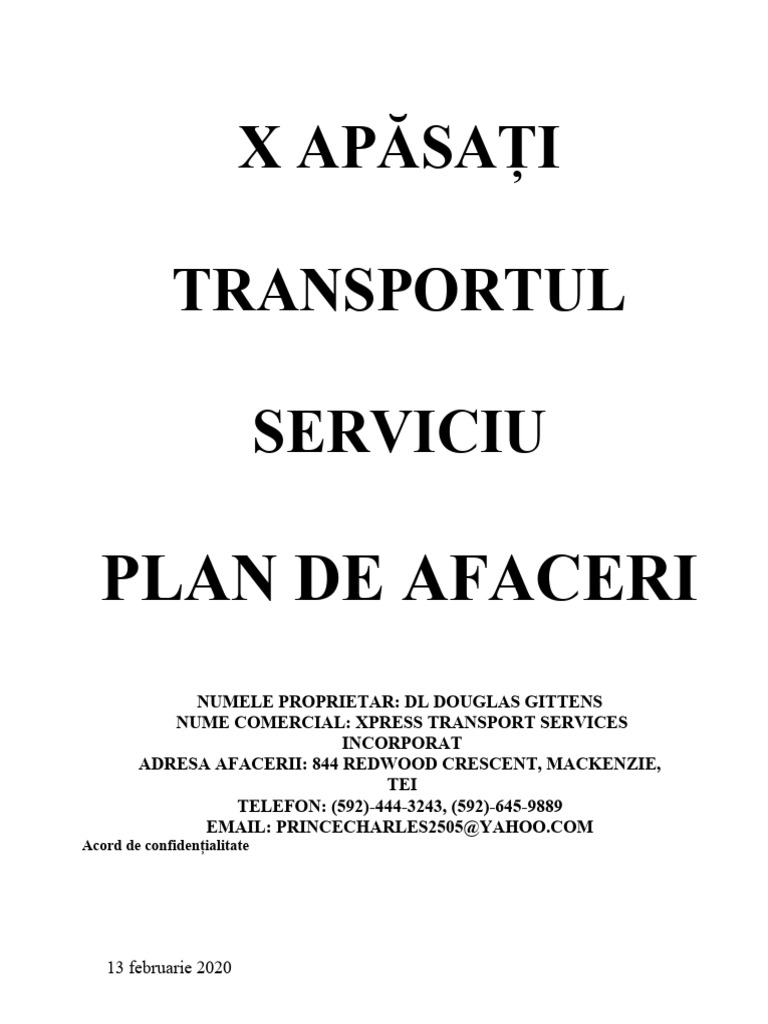Subsemnatul cititor ia la cunoștință că informațiile furnizate de X PRESS TRANSPORTATION