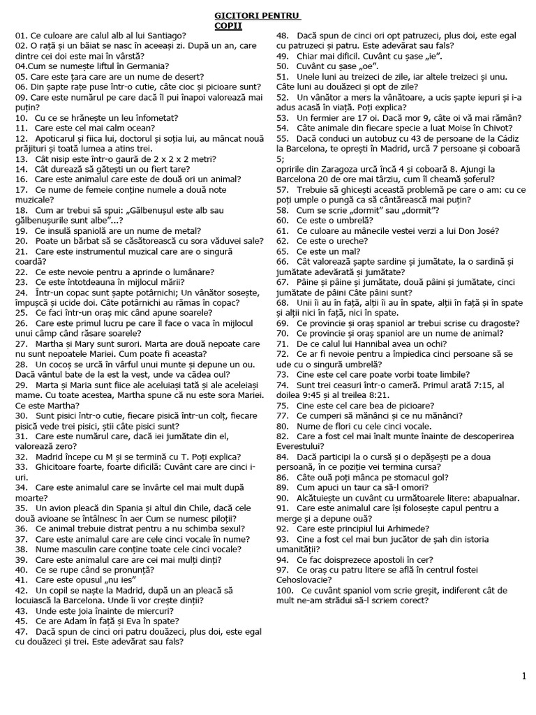 32. Madrid începe cu M și se termină cu T. Poți explica? 84. Dacă participi la o cursă și o depășești pe a doua