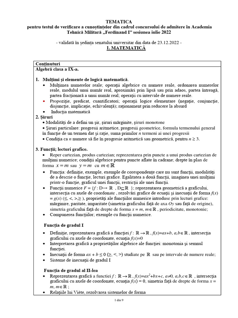 pentru examenul de admitere se elaborează în conformitate cu prezenta tematică şi nu