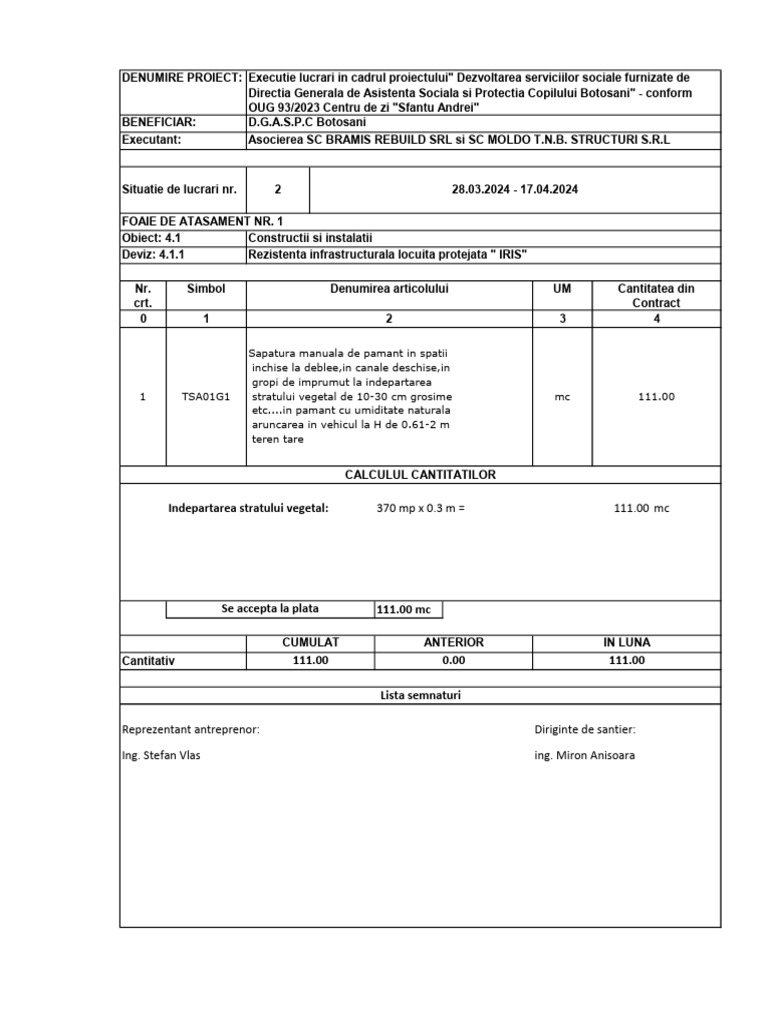 Situatie de lucrari nr. 2 28.03.2024 - 17.04.2024