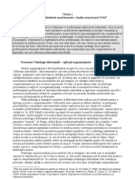 Autoevaluarea n plan profesional nseamn de fapt ntocmirea unui inventar personal. O tehnic eficient o reprezint autoexplorarea, rspunznd la ntrebrile ce vor fi prezentate i la unele ntrebri similare. Aceasta te va ajuta s te descoperi, s afli cine eti i ceea ce doreti de fapt. Rspunde la aceste ntrebri pentru fiecare slujb pe care ai avut-o, ncepnd cu cea mai recent i mergnd n ordine invers cronologic. 1. Evaluarea experienei de munc - Care este titlul postului deinut ? - Care sunt trei dintre cele mai importante sarcini pe care le-ai ndeplinit n acest post? - Ce alte sarcini ai mai ndeplinit? - Care din sarcinile menionate i-au plcut cel mai mult? - Care dintre sarcinile menionate i-au plcut cel mai puin? - Ce alte sarcini ai dori s ndeplineti n viitoarea ta slujb? - Exist obligaii de serviciu pe care nu doreti s le ndeplineti ntr-o slujb sau pe care nu le poi ndeplinii n mod adecvat? - Care sunt calitile tale cele mai mari? - Ce domenii de activitate i sunt cele mai ndeprtate? - Ce anume ai fcut n aceast slujb de care s fii mndru n mod special? - Ce ar considera compania ca fiind cea mai bun realizare a ta? - Ai primit vreo recunoatere special pentru realizrile tale? Dac da, sub ce form (creteri de salariu, premii, promovri etc.)? - Cum a evoluat n timp nivelul tu de responsabilitate? - Ce adjective ai folosi pentru a te descrie cel mai bine la locul de munc? - Cum te-ar descrie colegii? - Cum te-ar descrie superiorul tu? - De ce ai prsit postul? (Sau, dac mai eti nc angajat, de ce doreti s prseti postul ?) - Care este / a fost salariul tu de nceput? - Care este / a fost ultimul tu salariu? - Ai primit vreo alt form de compensare i dac da , care au fost acestea? 2. ntrebri generale Dup ce ai rspuns, pentru fiecare post deinut, la ntrebrile anterioare, continu cu urmtoarele ntrebri generale. - n ce climat de lucru te simi cel mai bine i de ce? - Lucrezi mai bine singur sau n grup? - Eti genul de individ care are nevoie de ndrumare, sau eti genul d-mi ce am de fcut i m descurc eu? - Preferi responsabiliti restrnse sau doreti s te implici n ntregul proces? - Care este evoluia ta profesional pn n prezent i de ce? - Care pare s fie urmtorul tu pas n cariera profesional? - Unde ai dori s ajungi n urmtorii cinci ani? - Preferi un mediu de lucru neprotocolar, nestructurat sau lucrezi mai bine ntr-un mediu conservator? - Ce restricii ai privind urmtorul tu post? - Doreti cu adevrat un alt post? - Care sunt elementele cele mai importante pe care le caui la viitoarea slujb? (Eti interesat de bani, beneficii mai bune, un post cu titlu, responsabilitate mai mare, situare geografic mai bun?) 3. ntrebri pentru tinerii absolveni - Care este cariera pe care doreti s-o urmezi? - Te-ai pregtit singur pentru aceast carier? 104