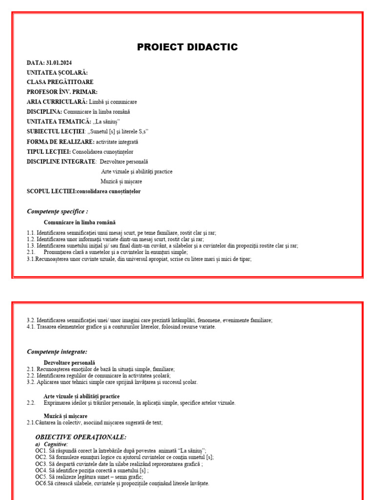 6. Forme de evaluare: observarea sistematică a comportamentului elevilor, aprecieri verbale.