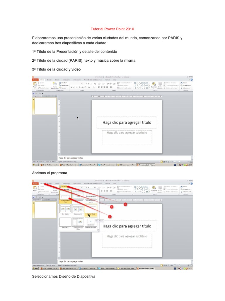 Tutorial Power Point 2010 Elaboraremos una presentacin de varias ciudades del mundo, comenzando por PARIS y dedicaremos