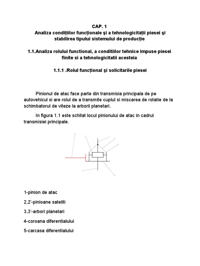 1.1.2 Conditii tehnice impuse piesei finite prin desenul de executie Pinionul de atac se executa cu un grad ridicat de precizie dimensionala, de forma si pozitie, precum si conditii importante privind rugozitatea suprafetelor. Principalele conditii tehnice prevad urmatoarele: