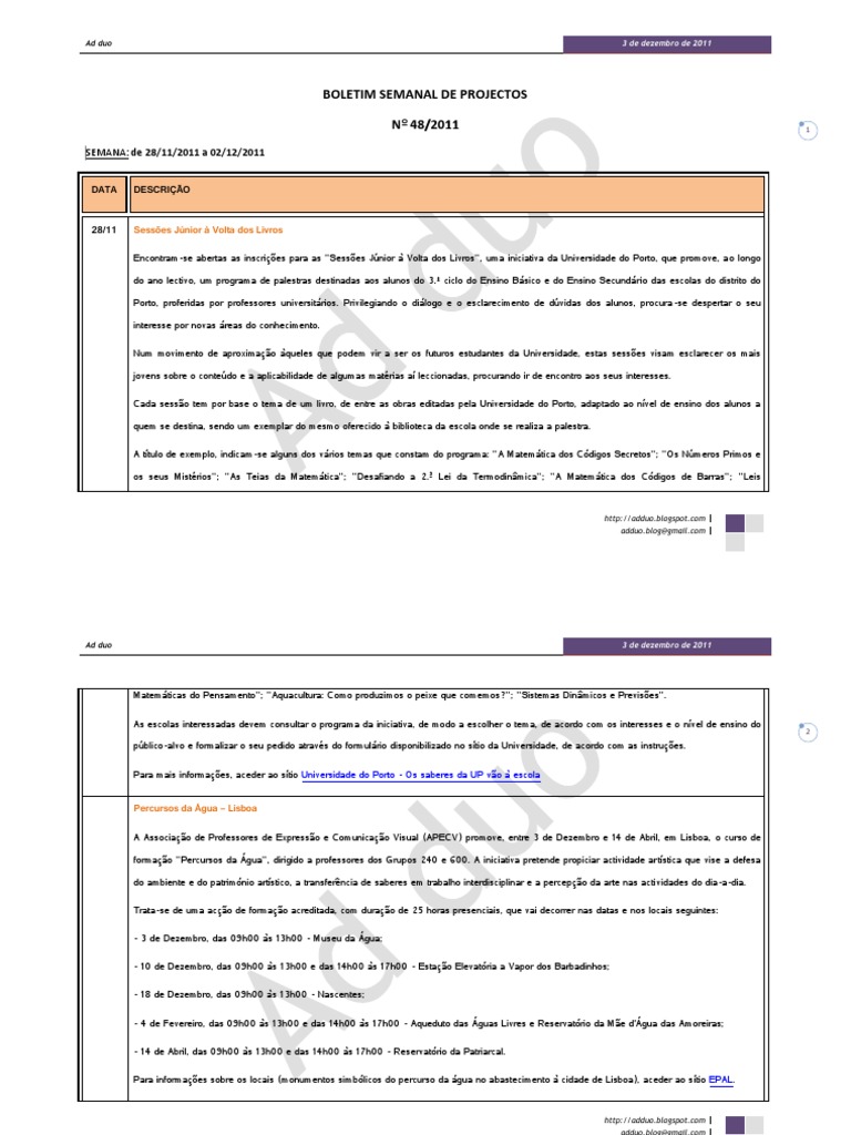 BOLETIM SEMANAL DE PROJECTOS N 48/2011