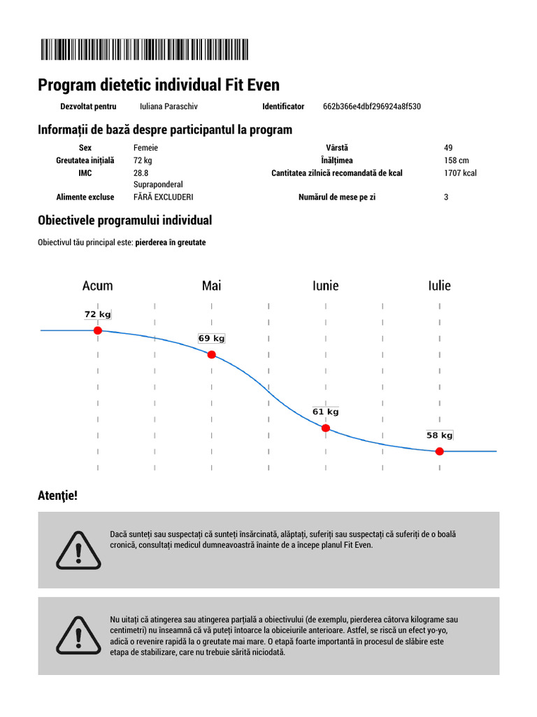 Planul dumneavoastră individual de dietă este scris pentru un anumit număr de zile. În funcție de progresele înregistrate și de stilul de