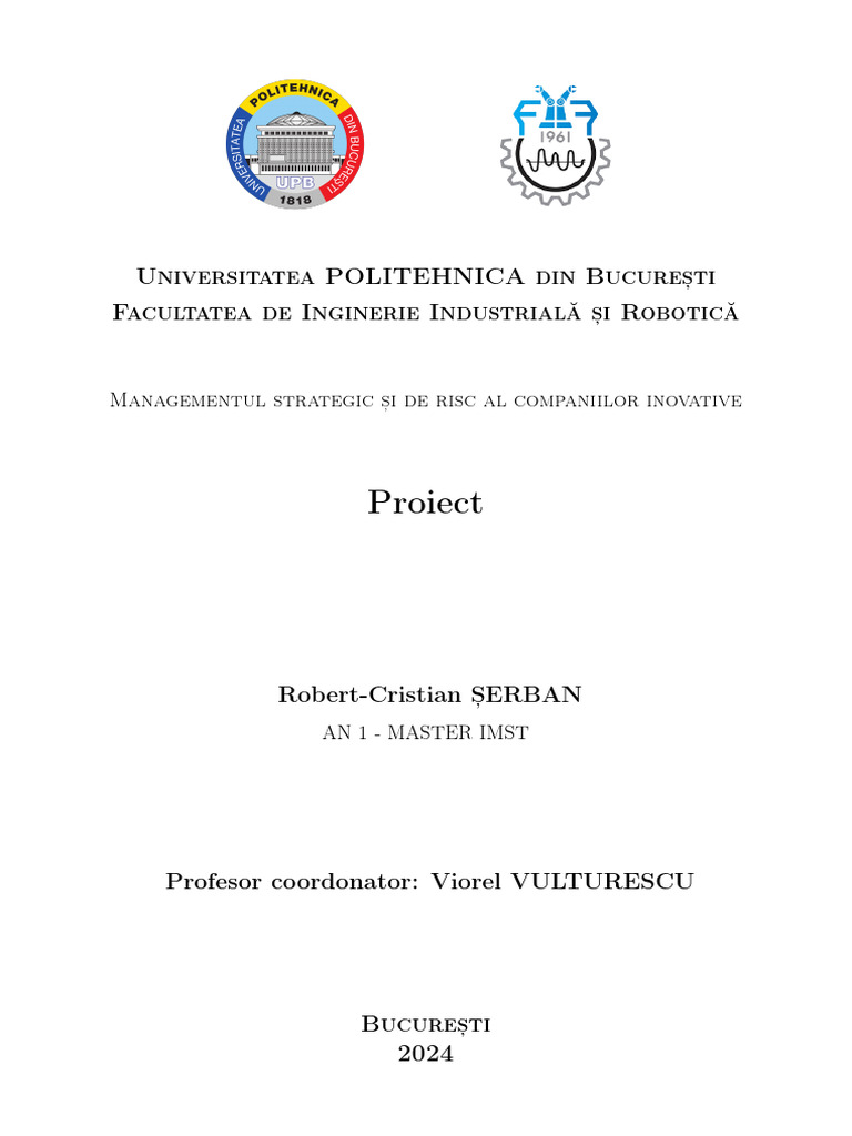 Prezentarea companiei Managementul strategic s, i de risc al companiilor inovative