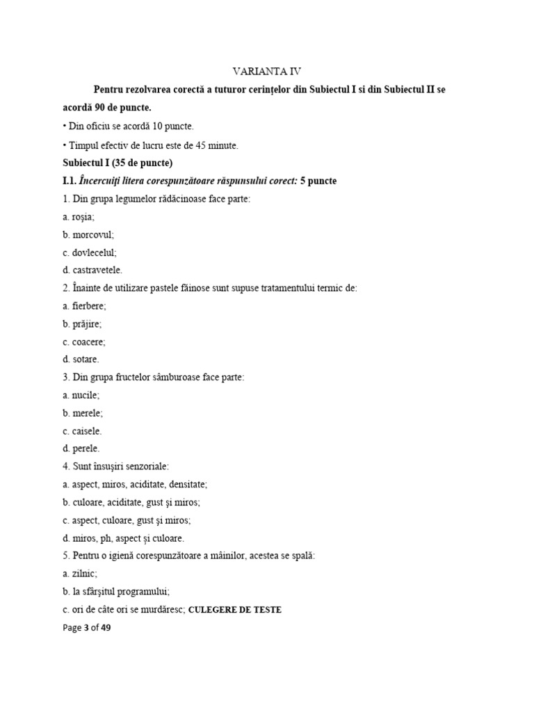Pentru rezolvarea corectă a tuturor cerinţelor din Subiectul I si din Subiectul II se