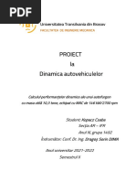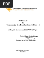 S se proiecteze schimbtorul de viteze mecanic cu variaia n trepte a raportului de transmitere i puntea fa cu suspensia sa pentru automobilul cu urmtoarele carateristici conform temei de proiect Automobile I: tipul automobilului: autoturism caroseria: berlin numrul de persoane (locuri): 5 masa util maxim constructiv:500 kg viteza maxim in palier: 190 km/h panta maxim: 34 % formula roilor: 4x2 echipat MAS