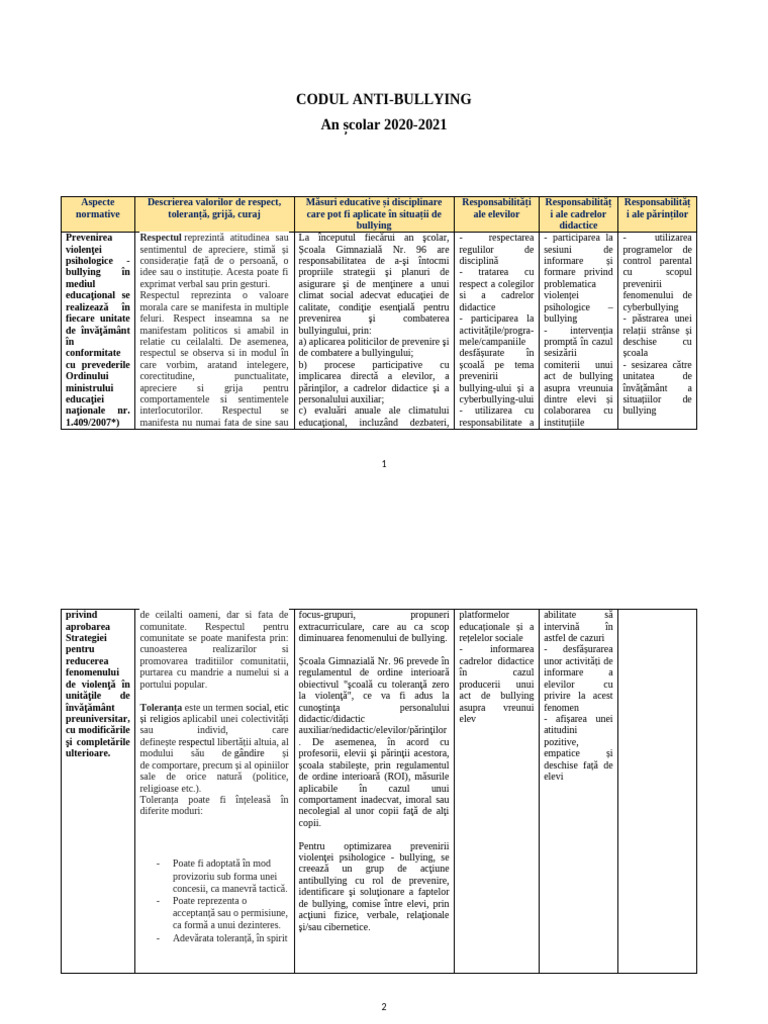 violenţei sentimentul de apreciere, stimă și Școala Gimnazială Nr. 96 are regulilor de sesiuni de programelor de