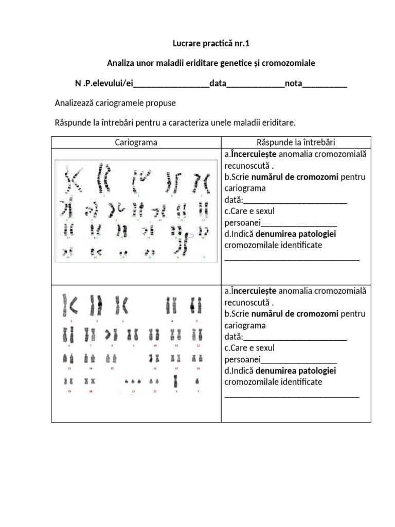 [Link] numărul de cromozomi pentru