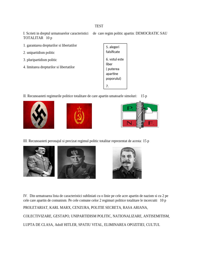 cele care apartin de comunism. Pe cele comune celor 2 regimuri politice totalitare le incercuiti 10 p