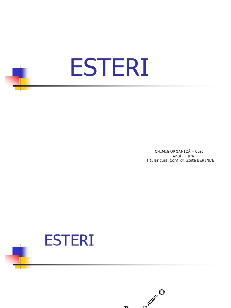 Dup num rul grupelor 1. Monoesteri 2. Diesteri i poliesteri COOR:
