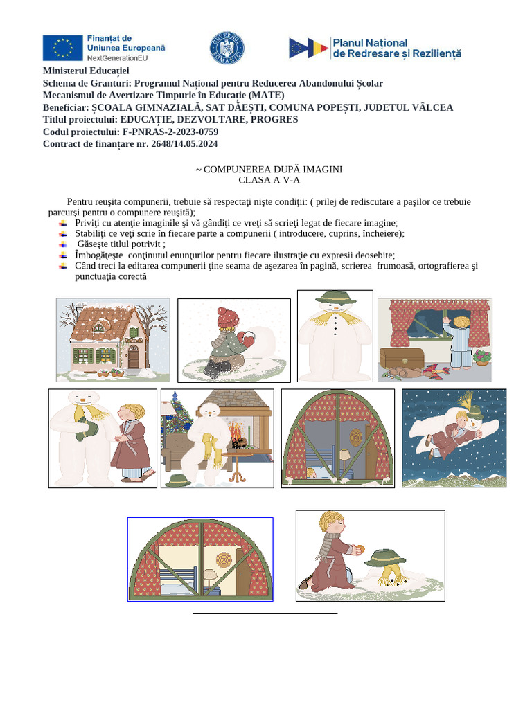 Priviţi cu atenţie imaginile şi vă gândiţi ce vreţi să scrieţi legat de fiecare imagine;