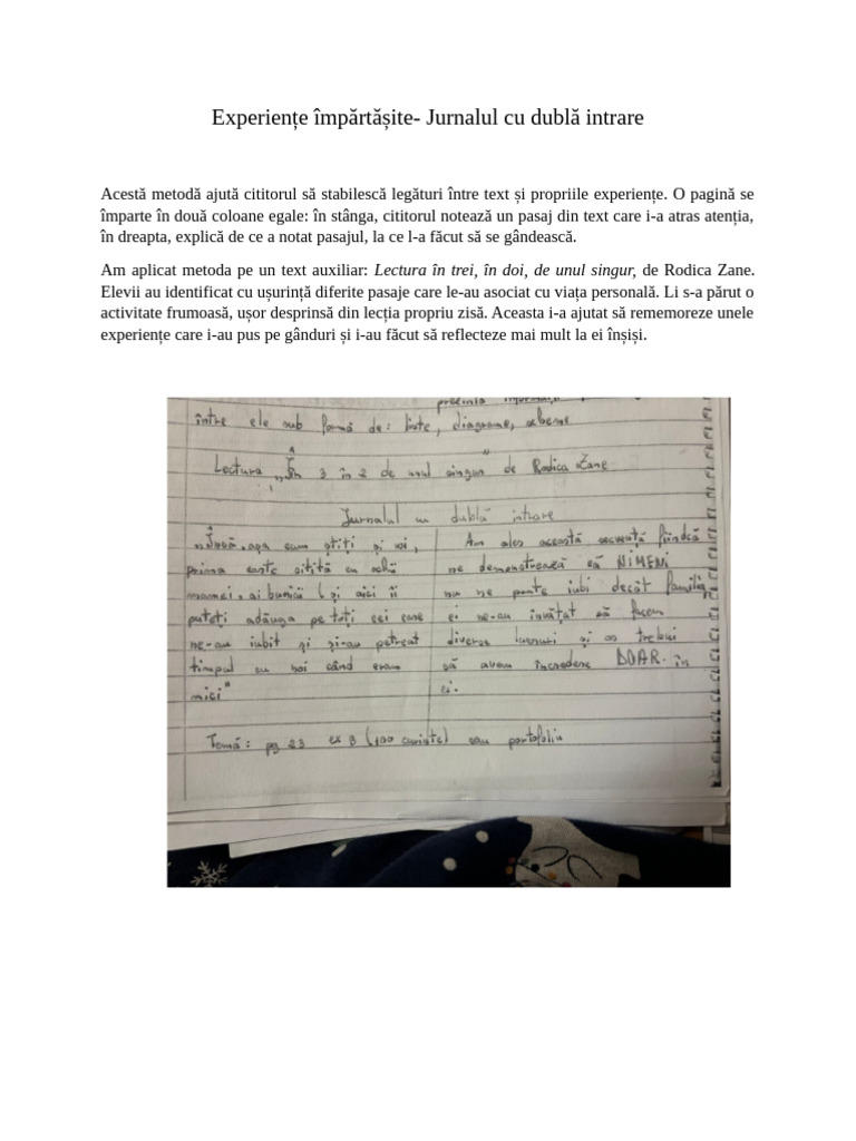 Experiențe împărtășite- Jurnalul cu dublă intrare