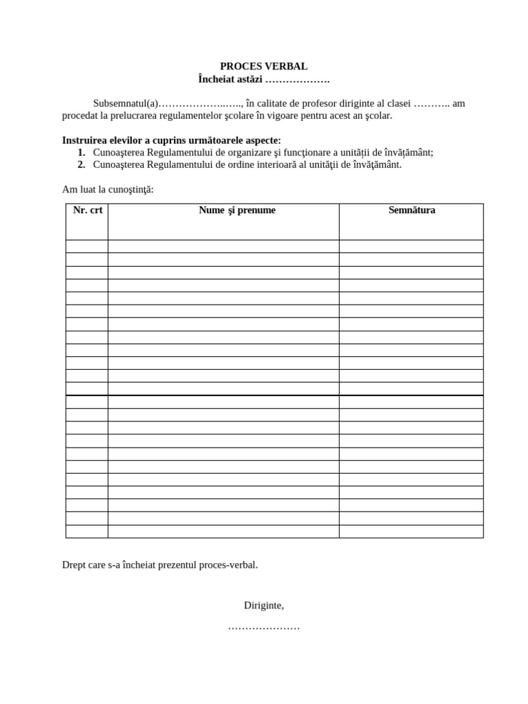 1. Cunoaşterea Regulamentului de organizare şi funcţionare a unității de învățământ;