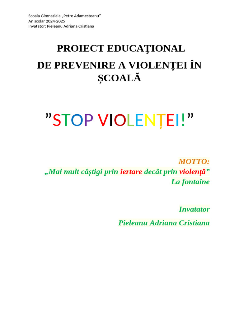 combatere a violenței în școală.