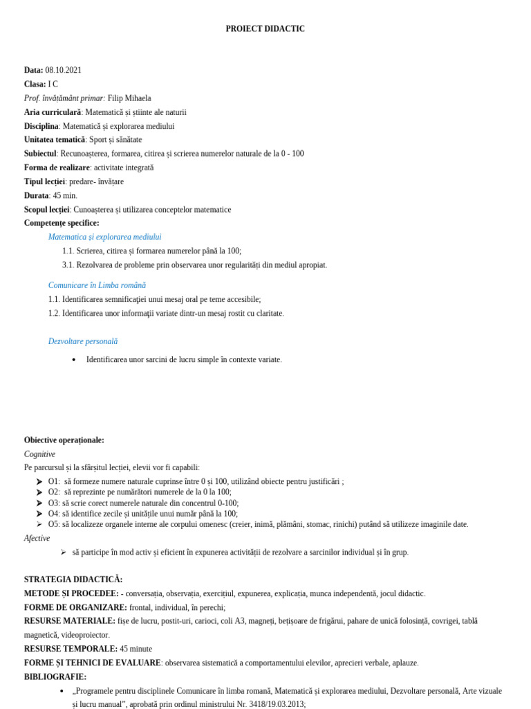 PROIECT DIDACTIC