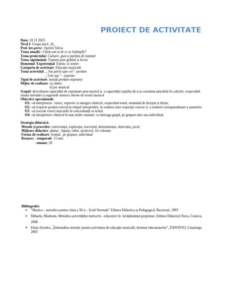 PROIECT DE ACTIVITATE