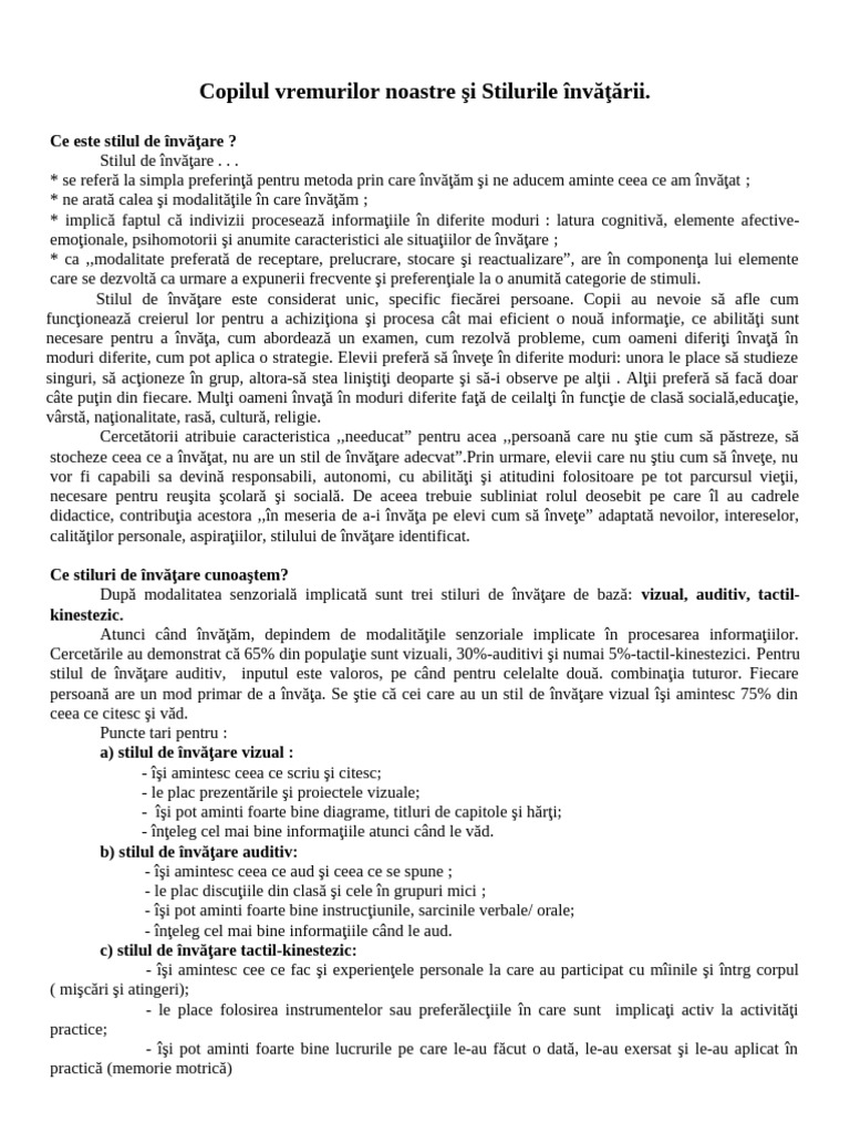 Copilul vremurilor noastre şi Stilurile învăţării.