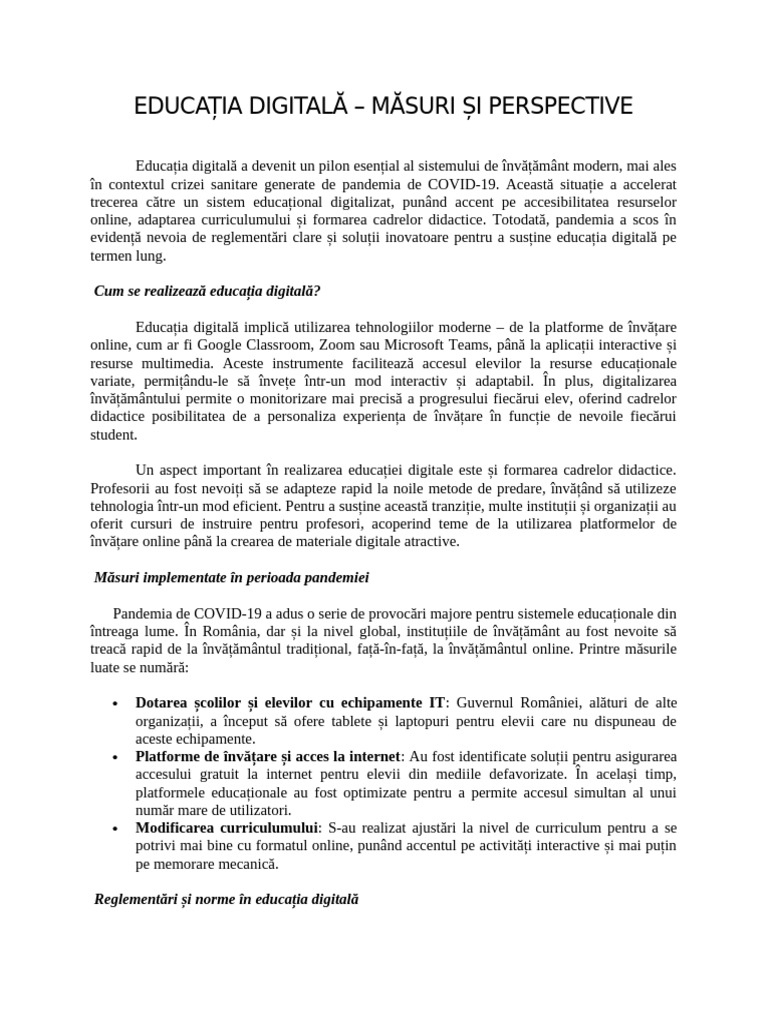 EDUCAȚIA DIGITALĂ – MĂSURI ȘI PERSPECTIVE