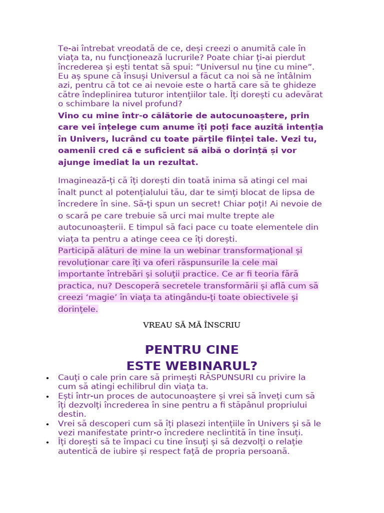 îți transformi viața prin acest webinar: