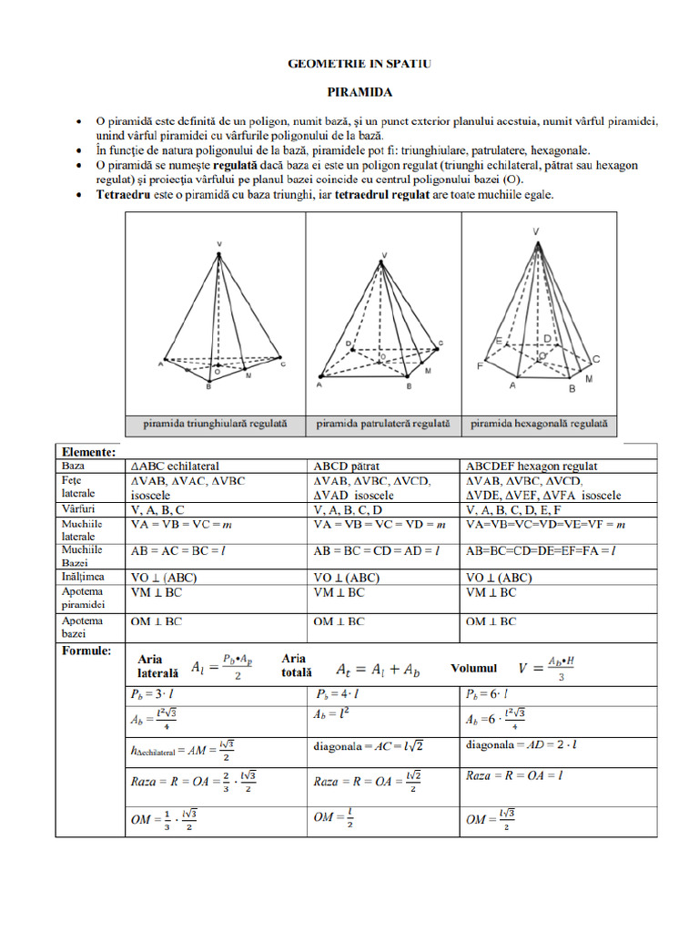 I Fie tetraedrul regulat VABC în care muchiile au lungimea de 3 cm. Calculaţi: