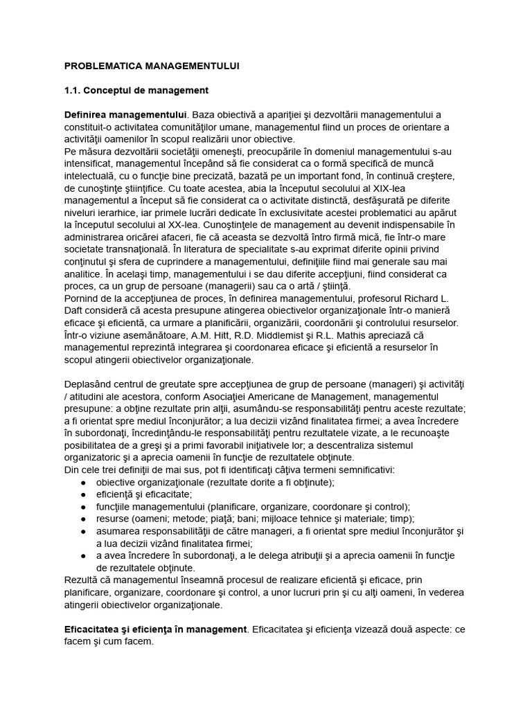 Definirea managementului. Baza obiectivă a apariţiei şi dezvoltării managementului a