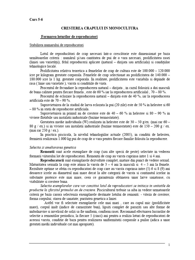 tehnologii de pregătire a heleşteului în vederea creşterii crapului cu toate că prezintă