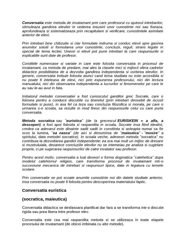 conversatia euristica (socratica, maieutica) este acea forma a conversatiei care