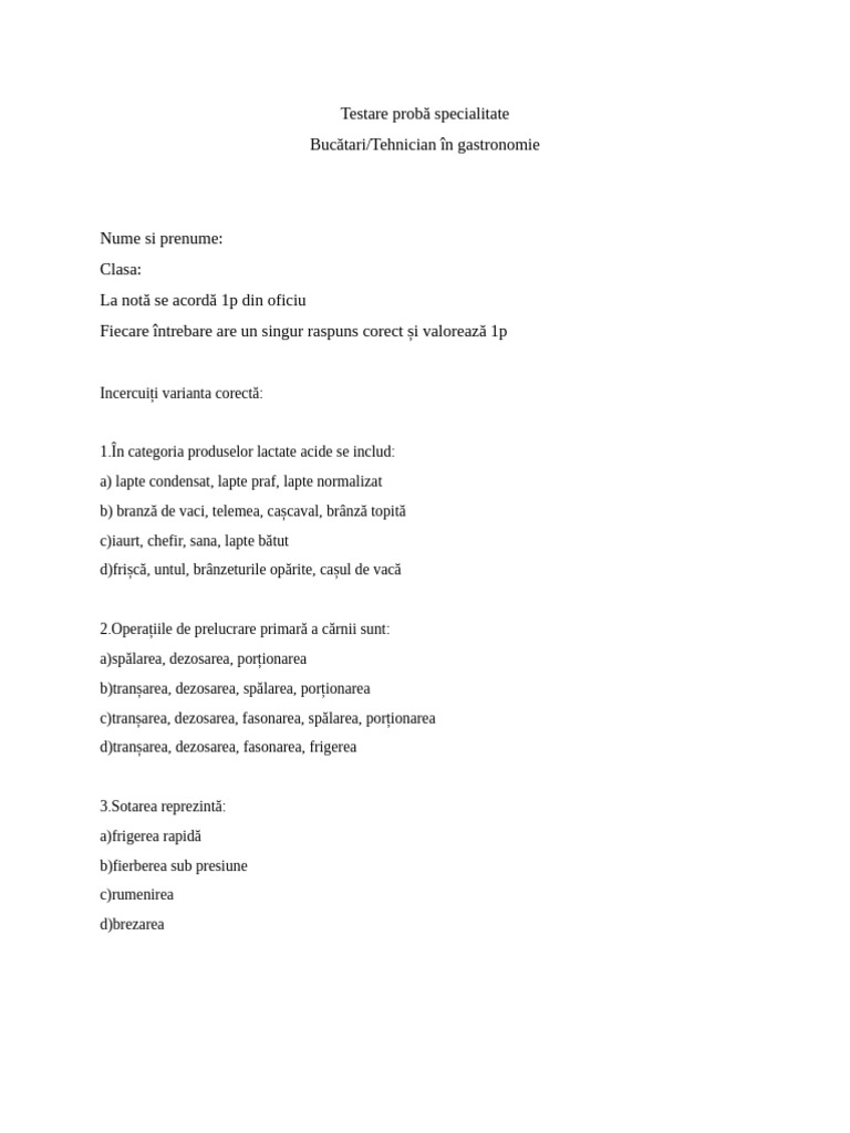 Fiecare întrebare are un singur raspuns corect și valorează 1p