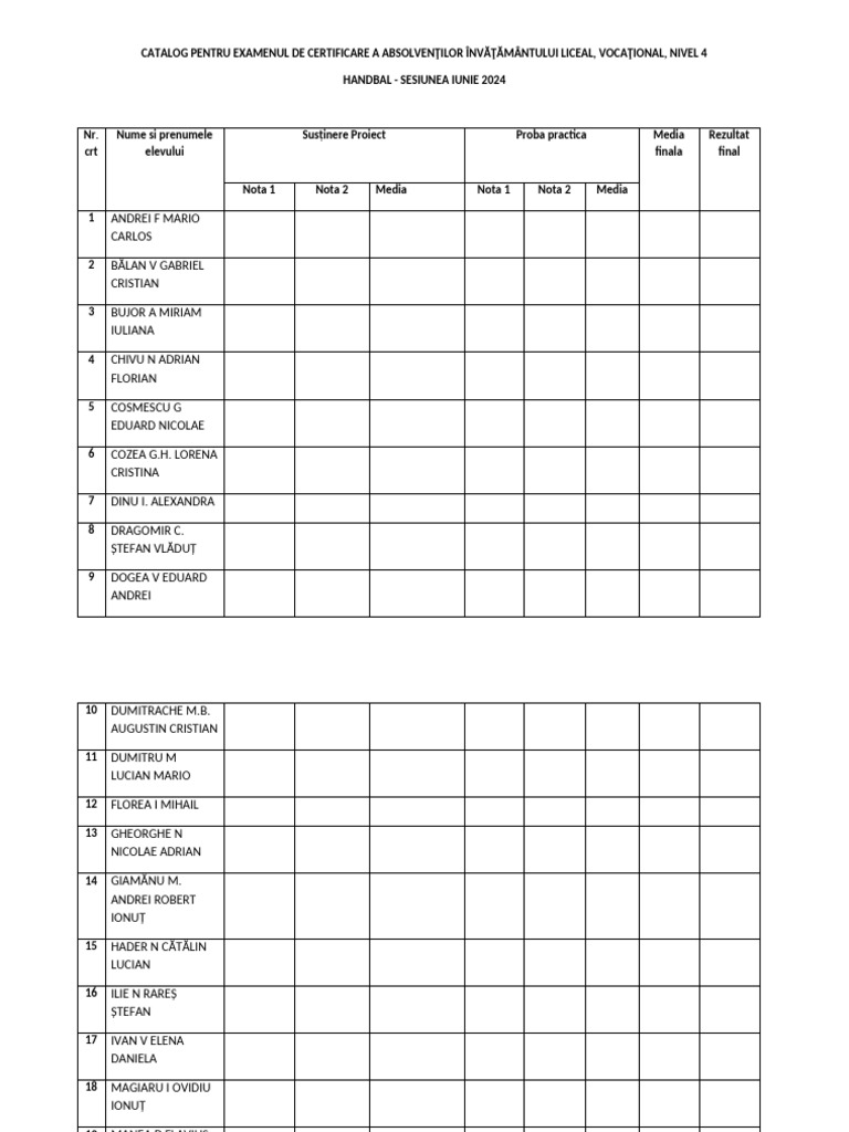 Nr. Nume si prenumele Susținere Proiect Proba practica Media Rezultat