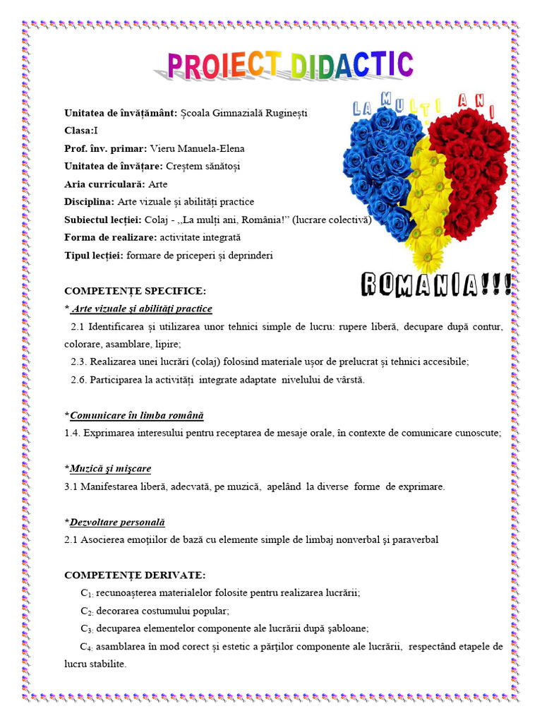 Subiectul lecției: Colaj - ,,La mulți ani, România!” (lucrare colectivă)