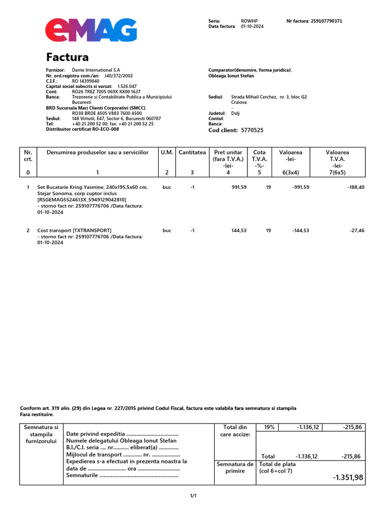 Distribuitor certificat RO-ECO-008 Cod client: 5770525