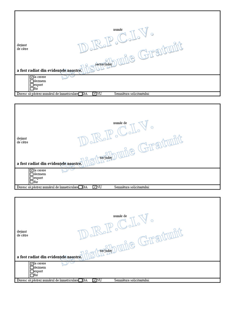 Doresc să păstrez numărul de înmatriculare □ DA □ NU Semnătura solicitantului: