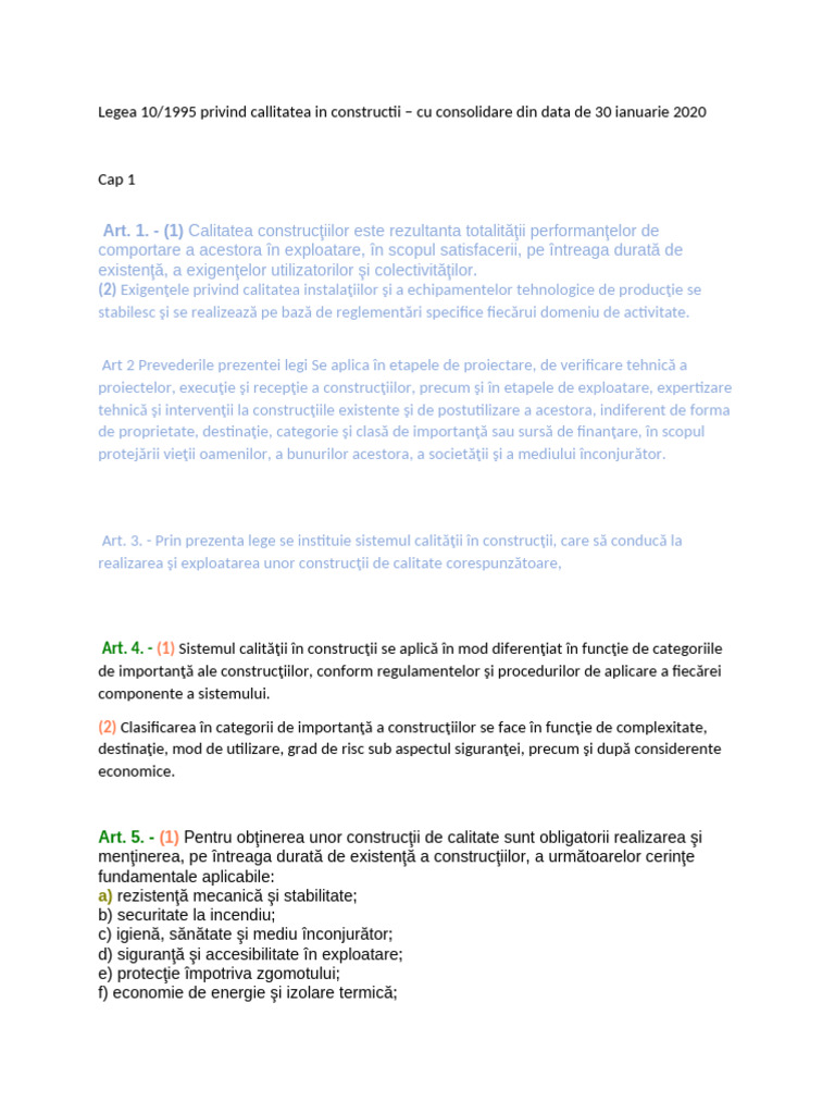 Legea 10/1995 privind callitatea in constructii – cu consolidare din data de 30 ianuarie 2020