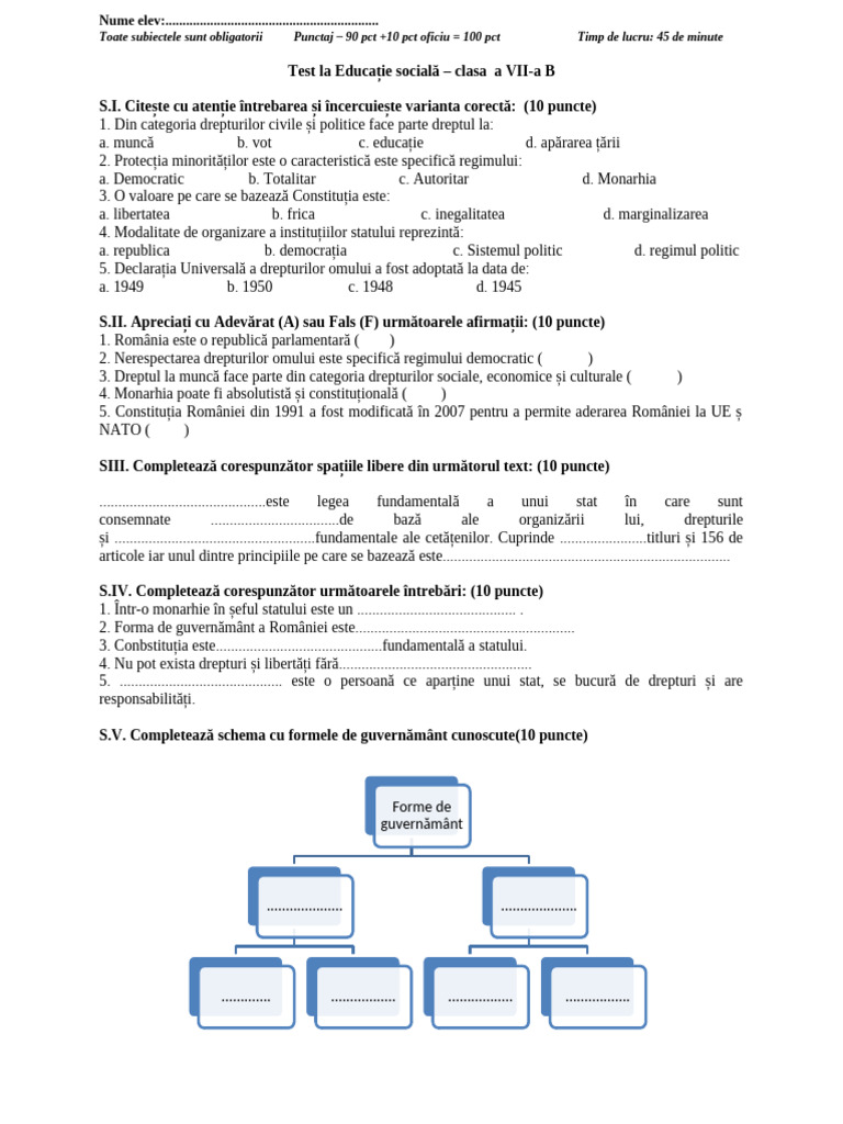 2. Forma de guvernământ a României este..........................................................