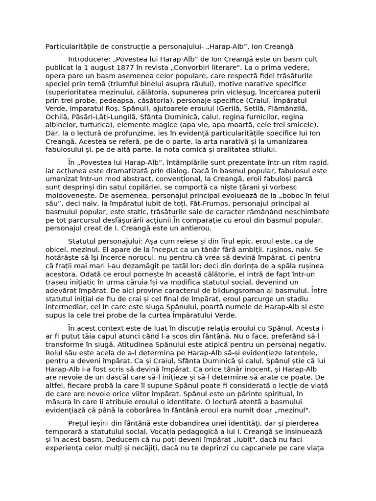 Particularitățile de construcție a personajului- „Harap-Alb”, Ion Creangă