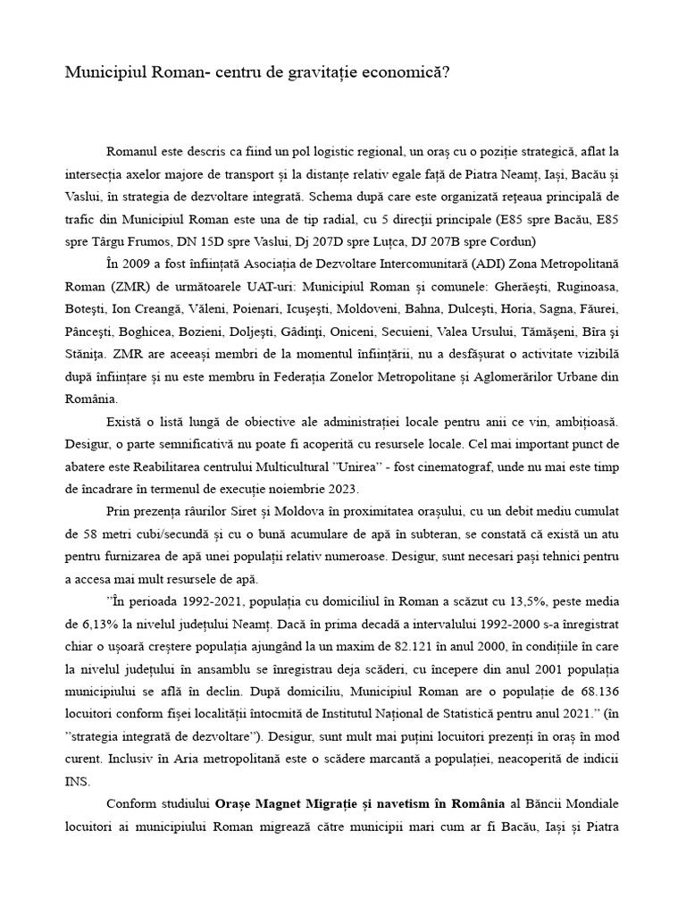 Așezarea geografică între orașe mai PUG Municipiului Roman Scăderea gradului de Persistența fluxurilor migratorii