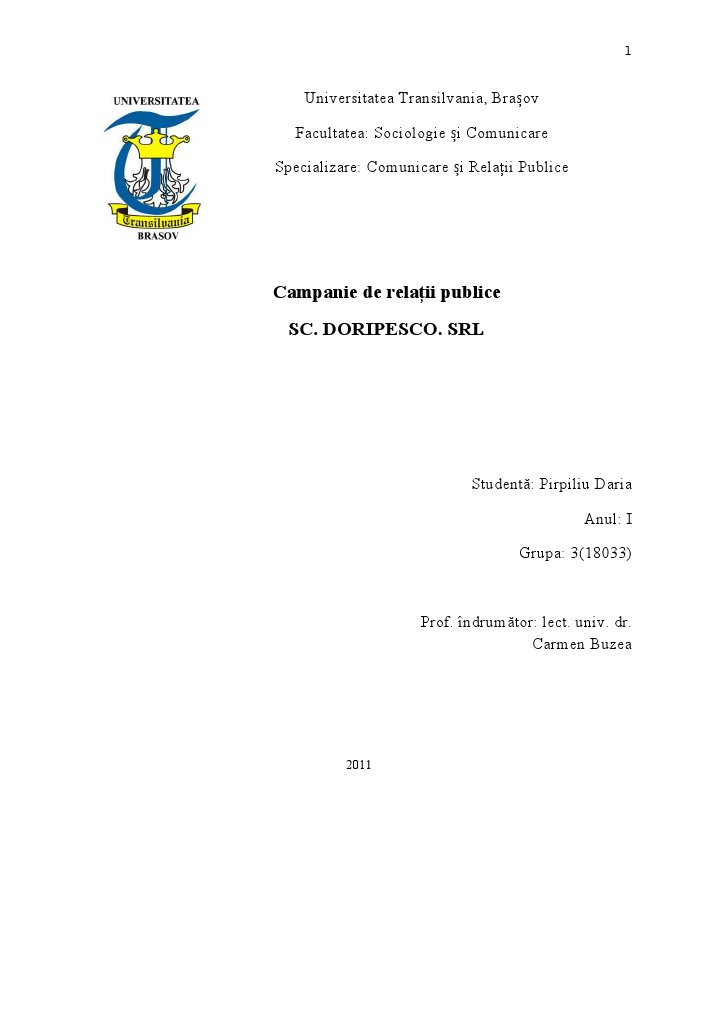 Campanie de relaii publice SC. DORIPESCO. SRL